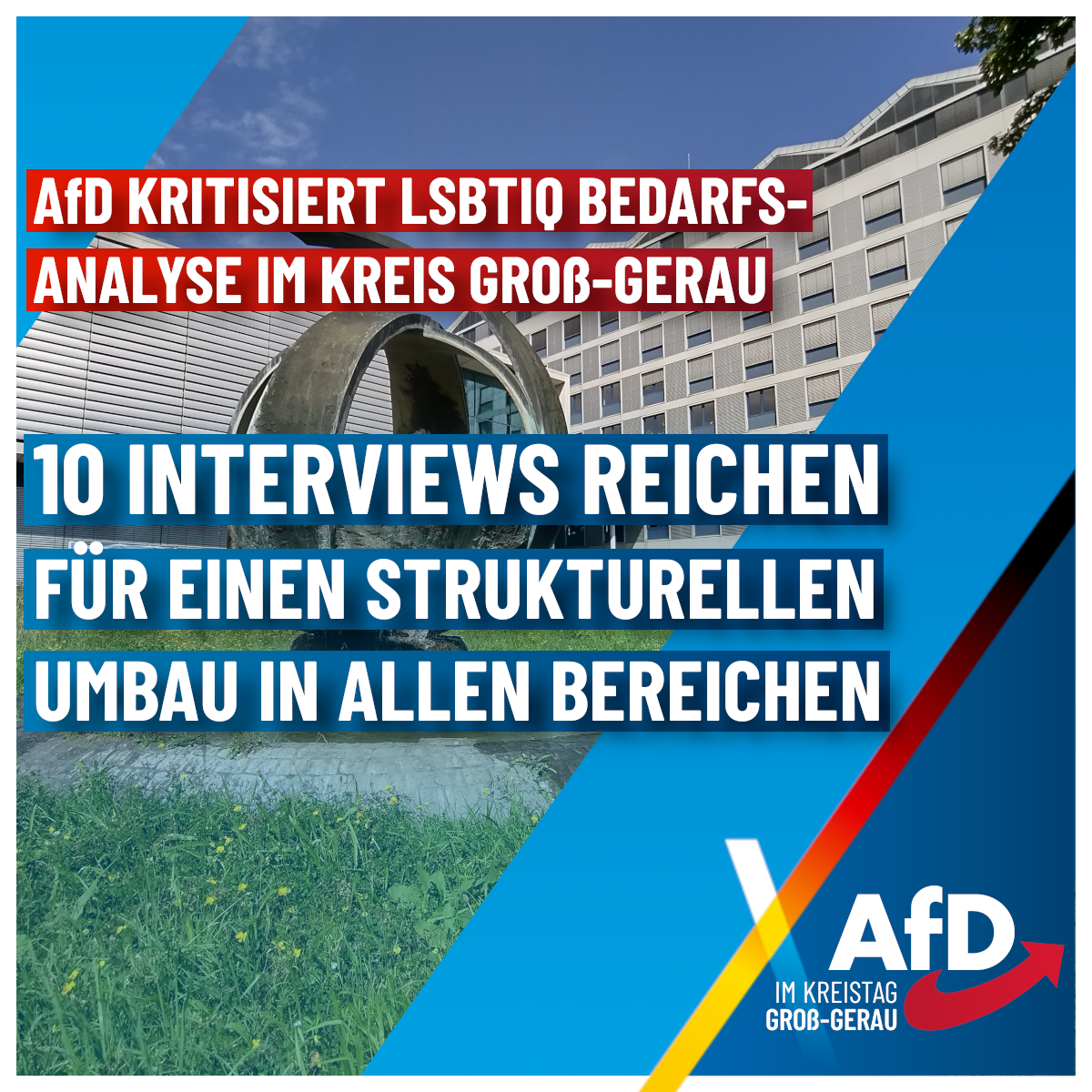 Die AfD Fraktion fordert daher, dass zukünftige Projekte im Themenfeld LSBTIQ nur dann finanziert werden, wenn ein klar nachweisbarer, breit belegter Bedarf vorliegt, der Kreistag ausdrücklich darüber beschließt und eine transparente Kostenaufstellung vorliegt. Steuergelder sollen vorrangig in Kernaufgaben wie Bildung, Sicherheit und Gesundheitsversorgung für die breite Bevölkerung fließen, statt in immer neue spezialisierte Konzepte, die lediglich auf Kenntnisnahmeberichten ohne repräsentative Datengrundlage beruhen.